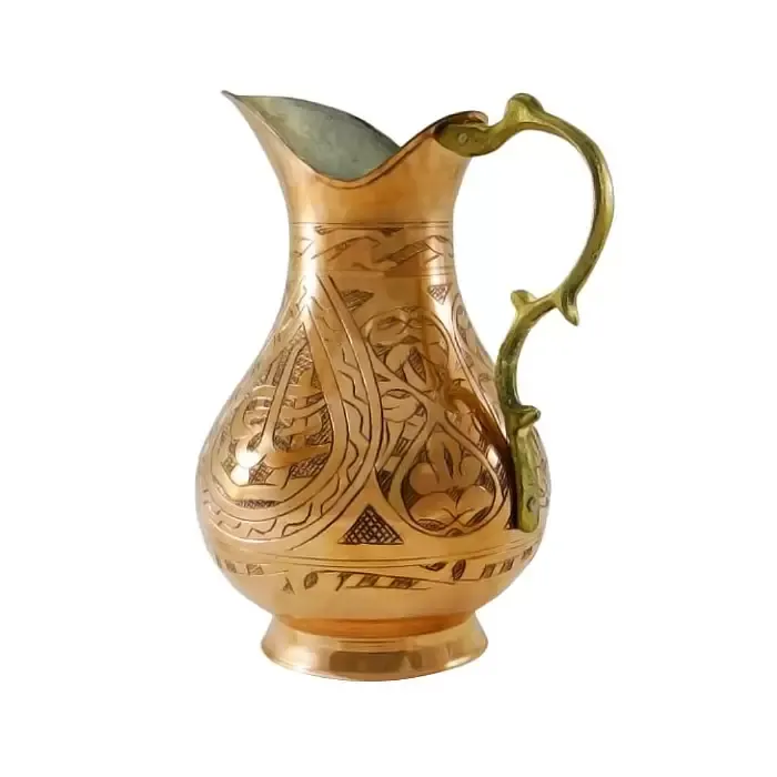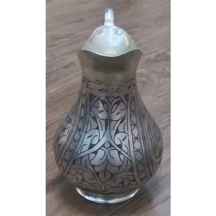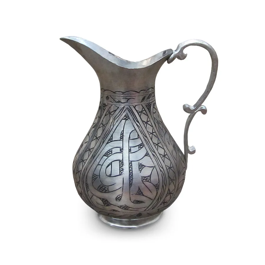 Металлический кувшин для воды с традиционным турецким узором для хаммама. Можно не только наливать в него воду или другие жидкости, но и использовать как декор турецкой бани.