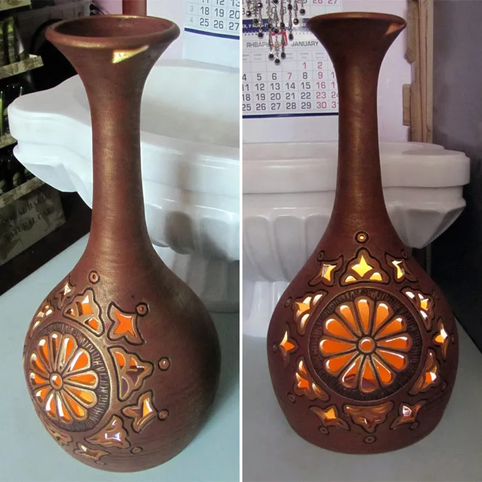 Глиняный кувшин служит для декорирования зоны выхода пара в хамаме. В кувшине имеется отверстие для подвода трубки с паром с нижней части. Сверху есть площадка для арома-масел. Возможно изготовление элементов хамама из глины по Вашим размерам и необходимым дизайном и рисунком.