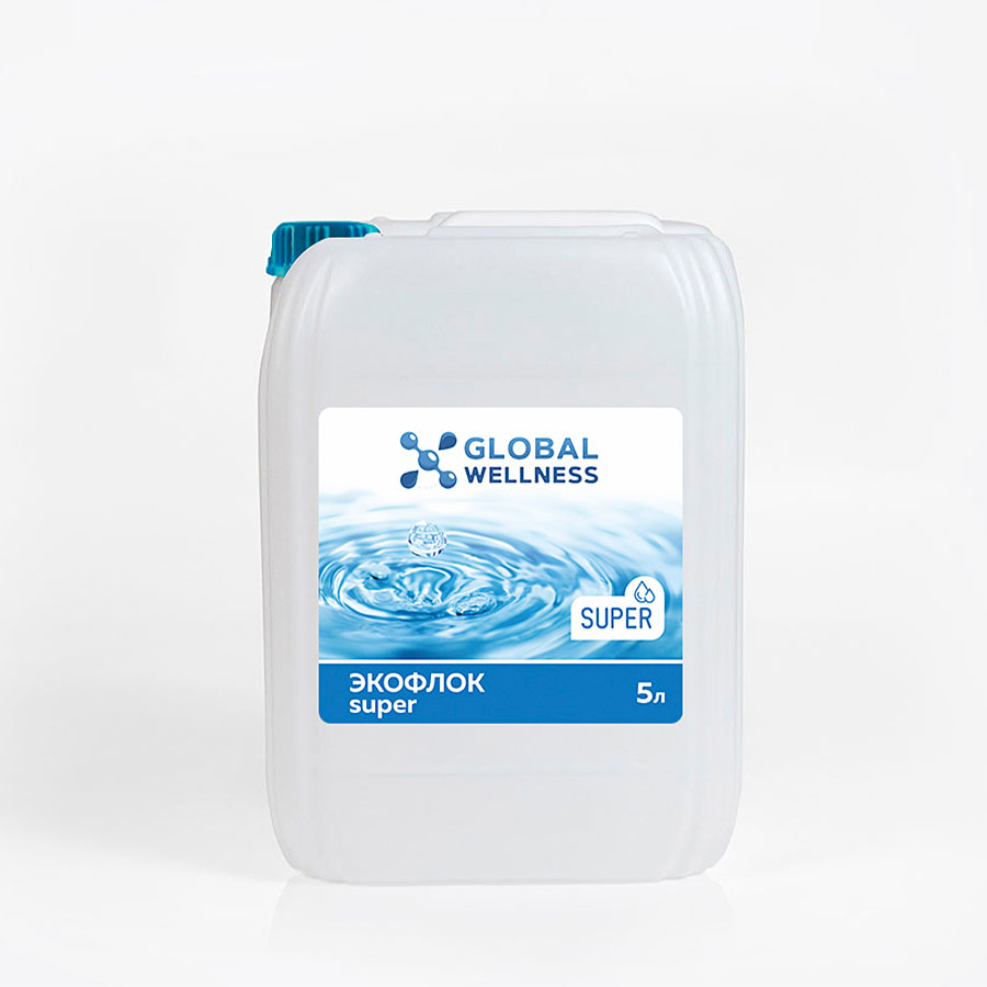 Высококачественный и эффективный органический жидкий коагулянт со свойствами флокулянта для очистки сточных вод, питьевой воды и воды плавательных бассейнов и аквапарков. Алюминий в препарате ЭкоФлок Super содержится в виде гидрокомплексов, которые адсорбируют и удаляют большее количество содержащихся в воде примесей. При точной дозировке и правильном подключении насоса дозации выводит загрязнения на фильтрацию с минимальным выпадением в осадок, делая воду прозрачной.