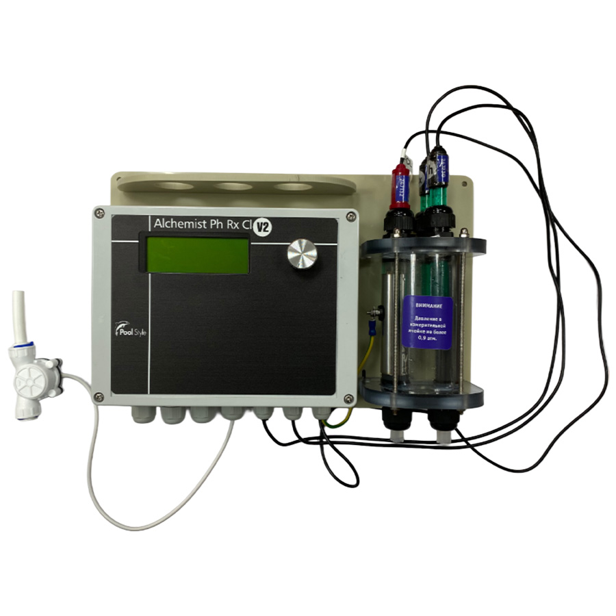 Пульт PoolStyle Alchemist PH, Rx, Cl автоматического управления дозированием хим. реагентов «РН-» и «CL». (с четырёхстрочным информационным дисплеем и энкодером). Дозация хим. реагента Cl происходит по показаниям электрода свободного хлора. Рекомендован международной ассоциацией грудничкового плавания для использования в детских и грудничковых бассейнах.