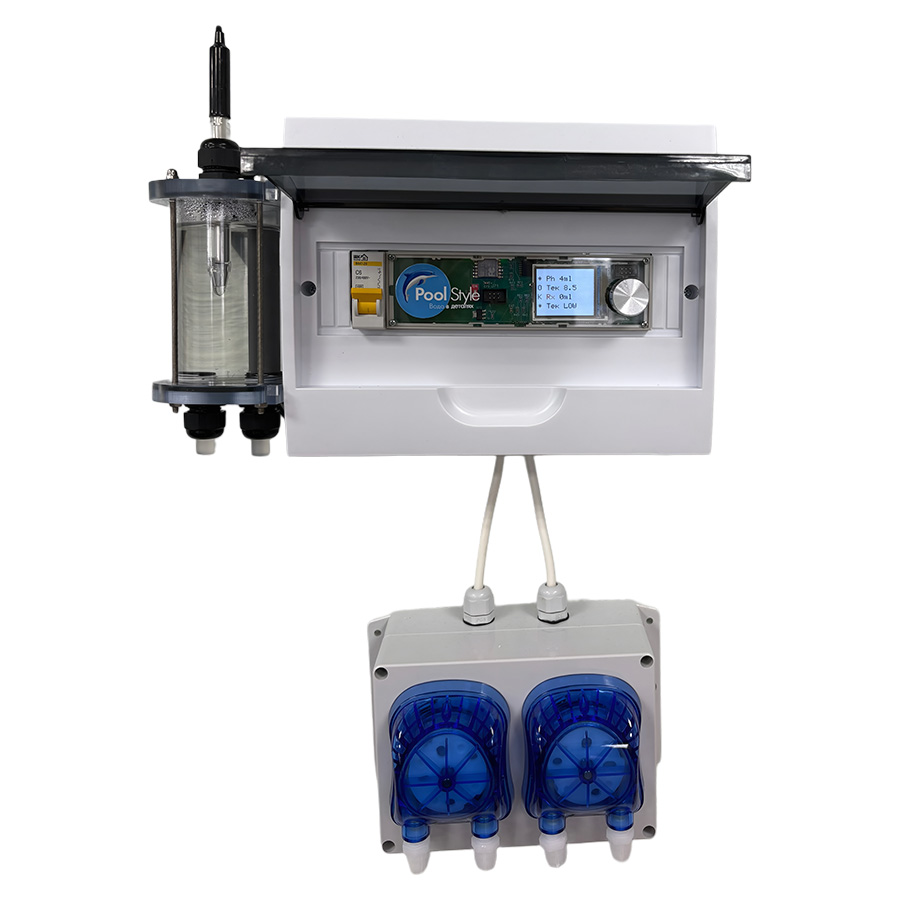 Пульт автоматического управления дозированием химических реагентов PoolStyle Alchemist PH, RX DIN. Устройство предназначено для дозирования химических реагентов Cl и Ph – минус/плюс в систему водоподготовки плавательных бассейнов, а также для контроля и поддержания заданных значений концентрации Rx и Ph в воде бассейна.