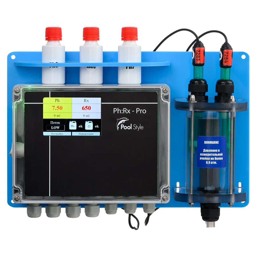 - Уникальный цикличный алгоритм дозирования хим. реагента Ph и CL с возможностью самоадаптации к текущим условиям работы.