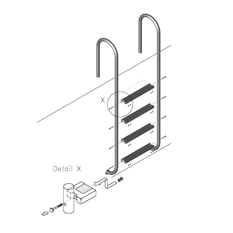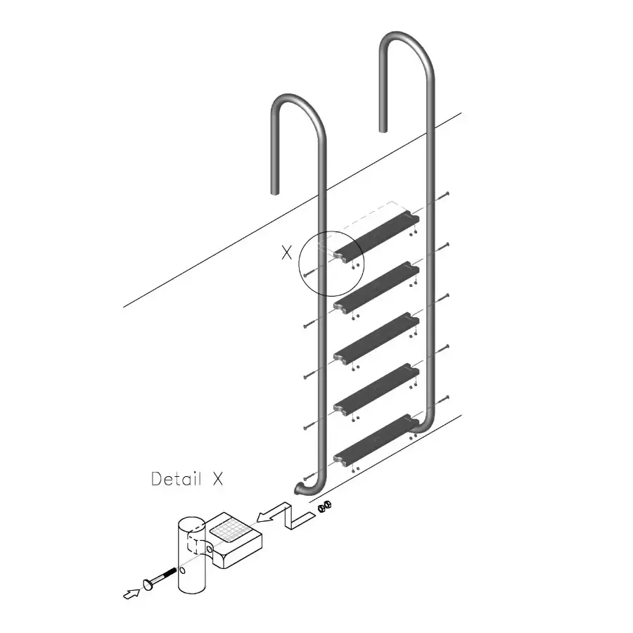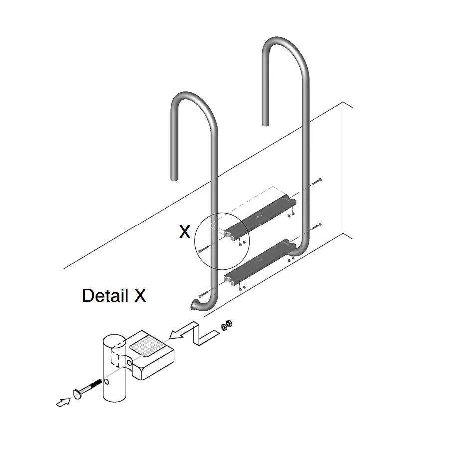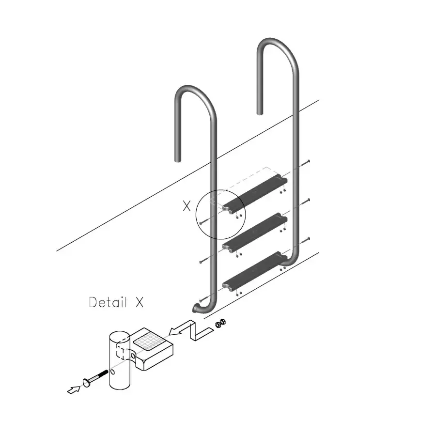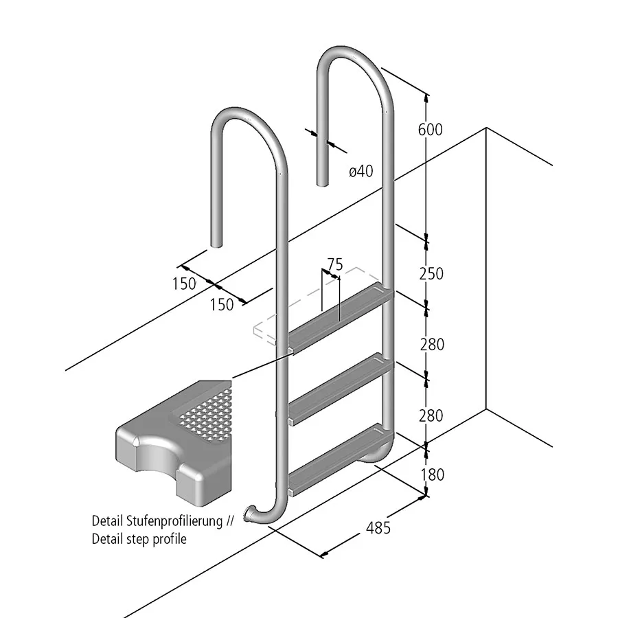 Лестница Ideal Tina Model 01 для бассейна с вертикальными стенками. Классический дизайн, четкие линий и высокое качество позволяют устанавливать лестницы немецкой компании Ideal в любом плавательном бассейне. Поручни для захвата и ступени изготовлены из лучшей марки нержавеющей стали – AISI-316, устойчивой к коррозии, а также к хлорид-ионам, допуская их содержание в воде на уровне 400 мг/л. Подходит для скиммерных бассейнов, с узким бортом.