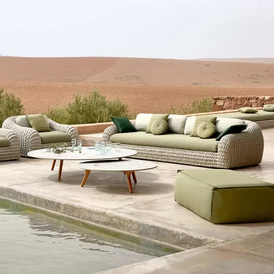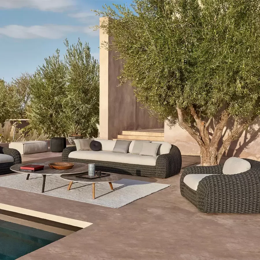 Коллекция уличной мебели Kobo от Manutti оставляет неизгладимое впечатление благодаря своему, казалось бы, классическому дизайну. Его техническая сложность становится очевидной при ближайшем рассмотрении. Глубокие плюшевые сидения с изогнутыми линиями делают шезлонг, широкое 1-местное кресло и 3-местный диван чрезвычайно удобными.