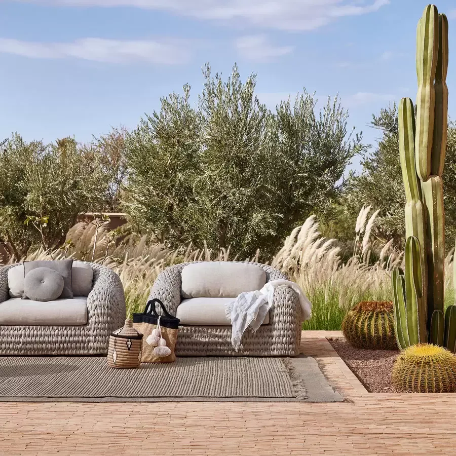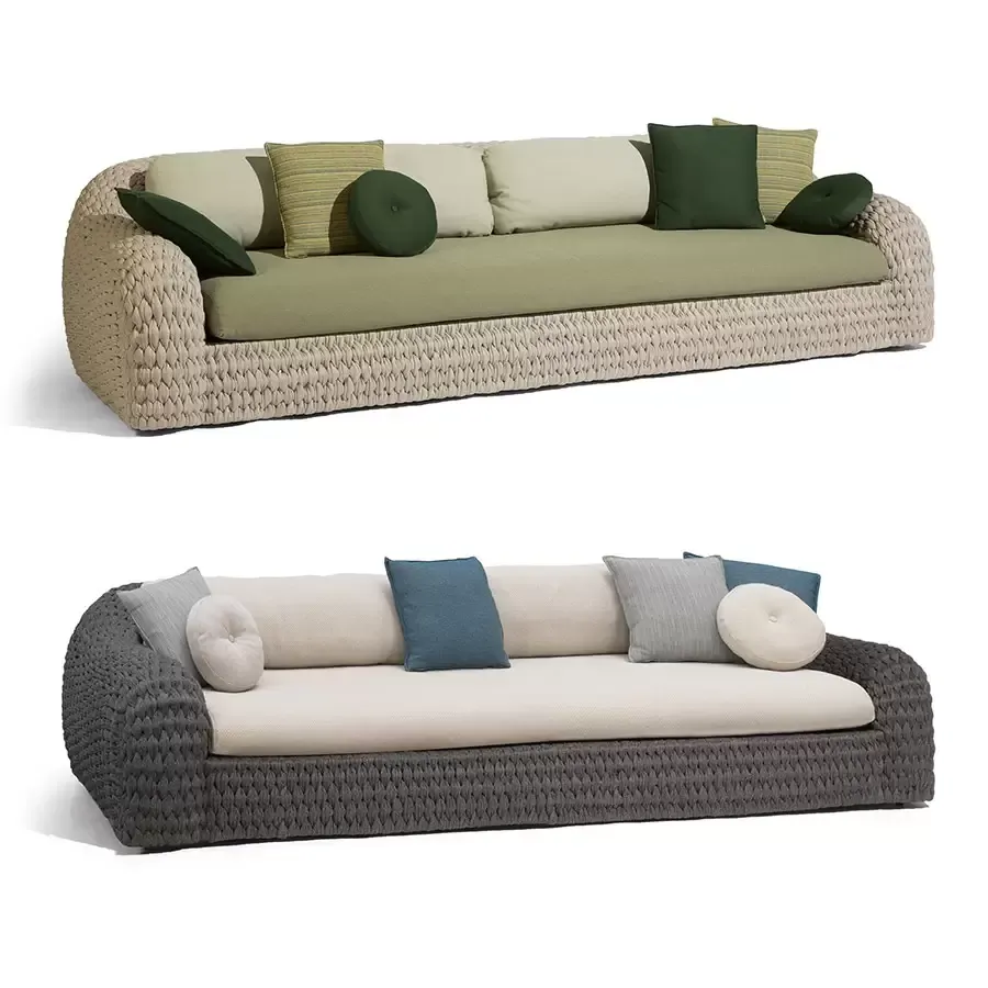Мебель для улицы Kobo доступна в цвете "Антрацит" и "Белый перец", а также разные цвета текстиля для подушек.