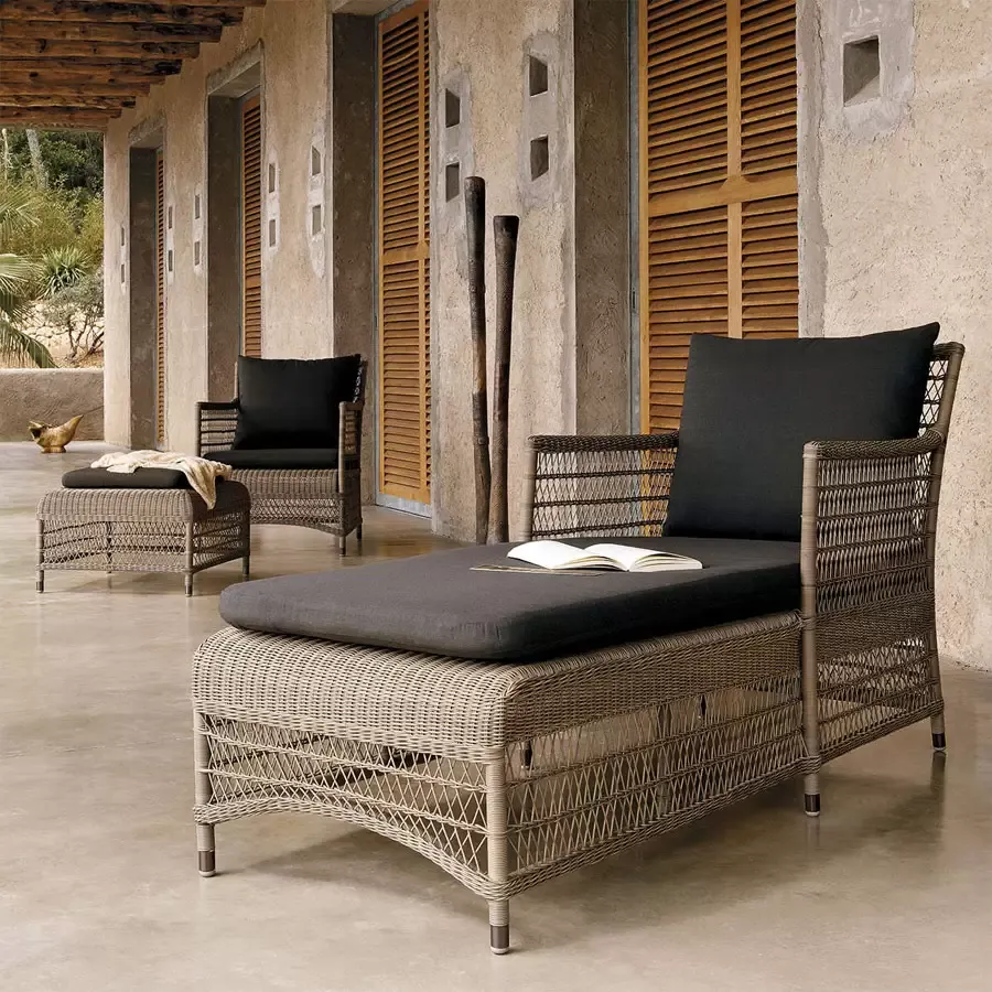 Экзотические округлые формы с оттенком роскоши. Manutti Malibu – коллекция плетеной уличной мебели выглядит так, будто ее только что привезли из колониальной Африки. Особенно впечатляют элегантные стулья для внутреннего дворика или шезлонг, который идеально подходит для отдыха с чашкой чая на крытой террасе или крыльце.