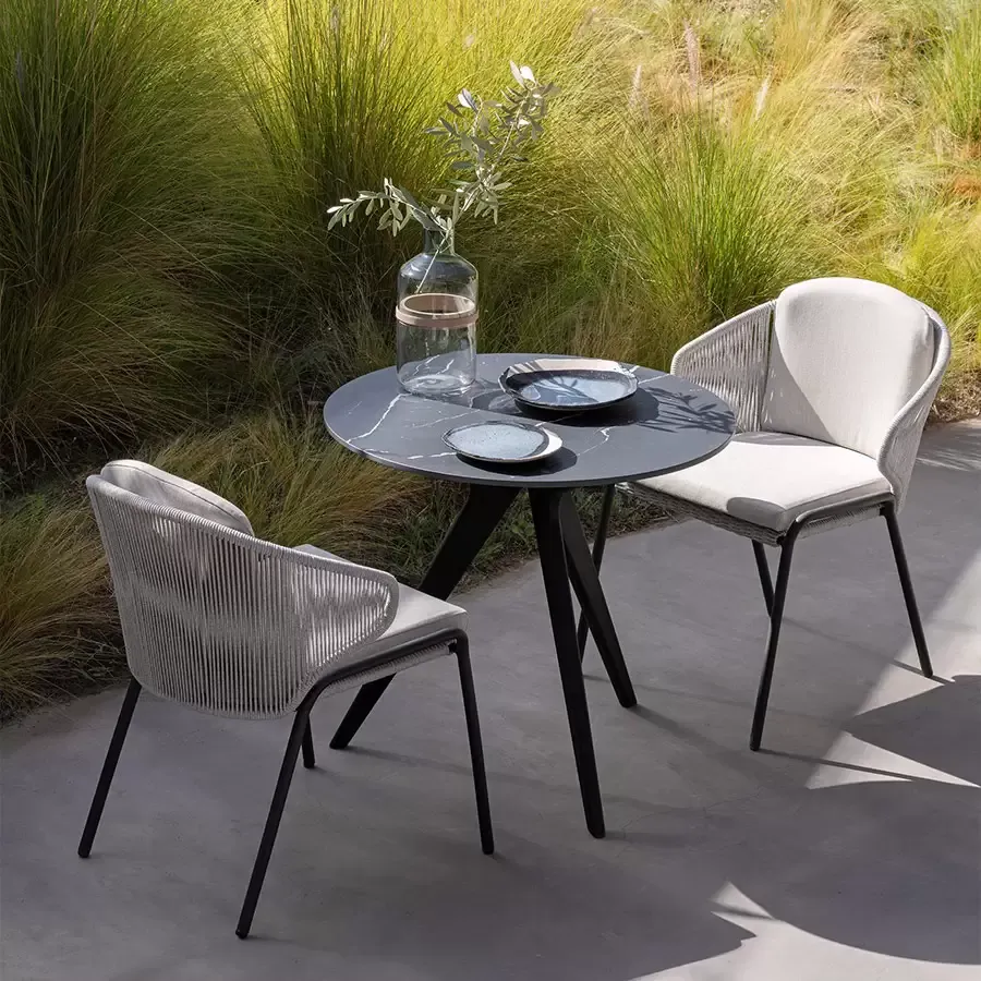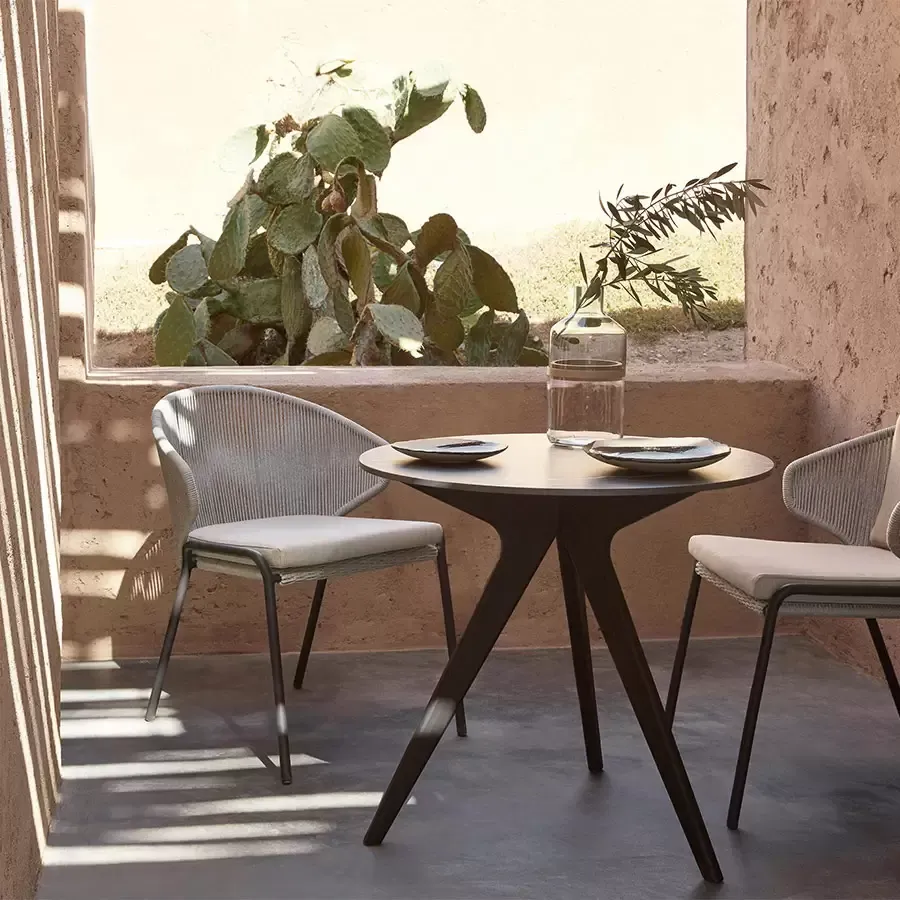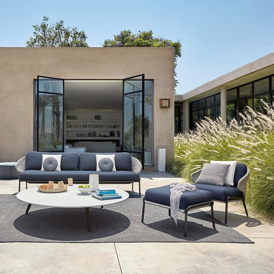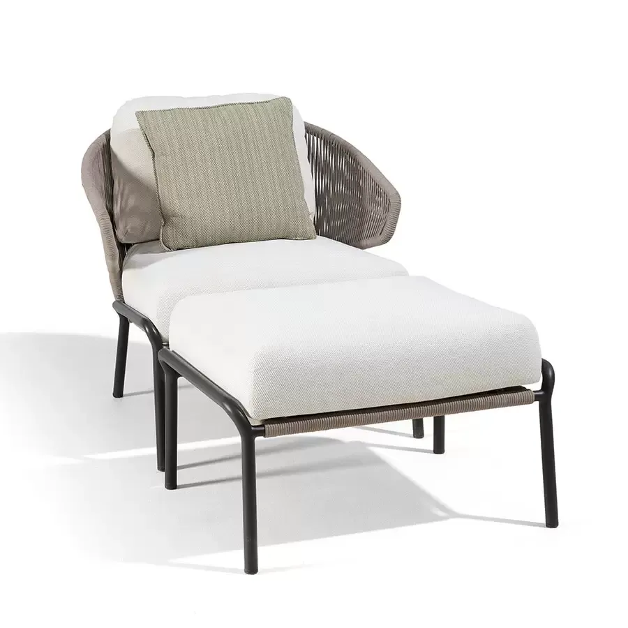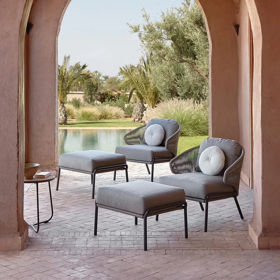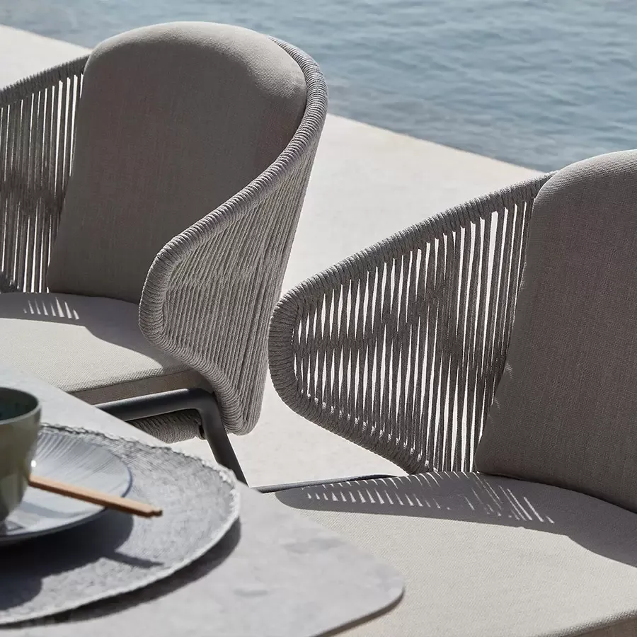 Мебель серии Radius в стиле неомодерн, безусловно, производит сильное впечатление своей обнимающей спинкой, которая также включает в себя подлокотники. Эта коллекция уличной мебели от Manutti с металлическим каркасом и веревочным плетением будет вне времени. Дополнительная подушка спинки обеспечивает оптимальный комфорт для длительных встреч. Еще одна приятная особенность – мебель Radius очень легкая.