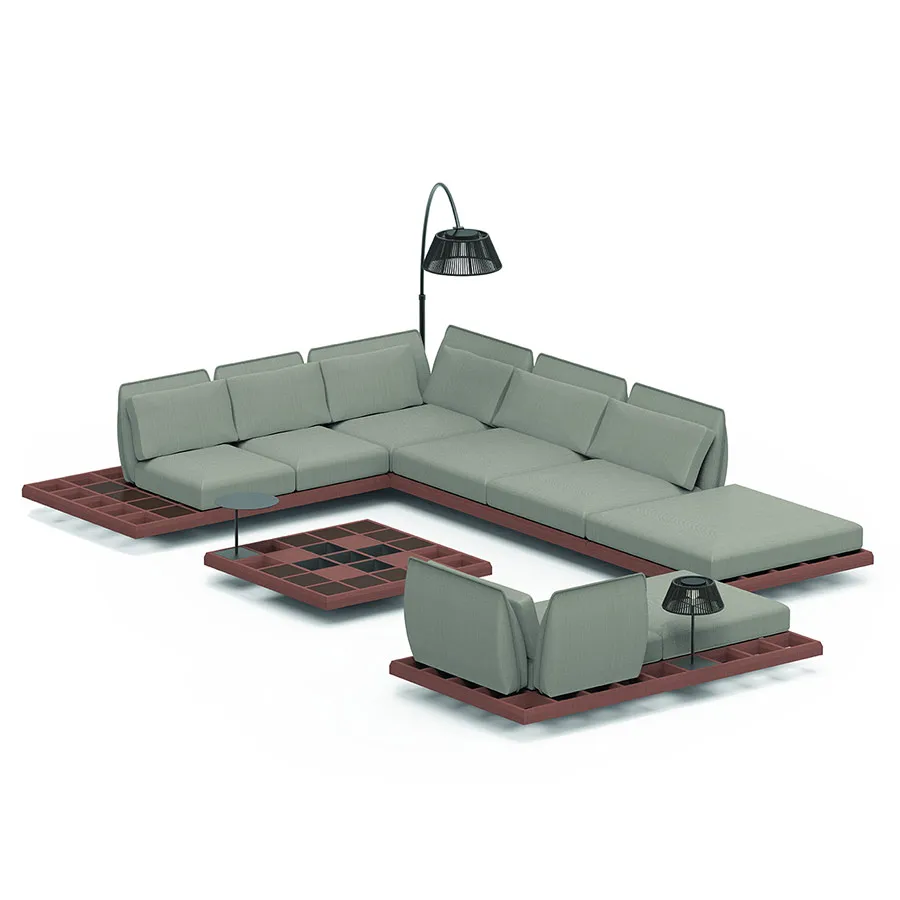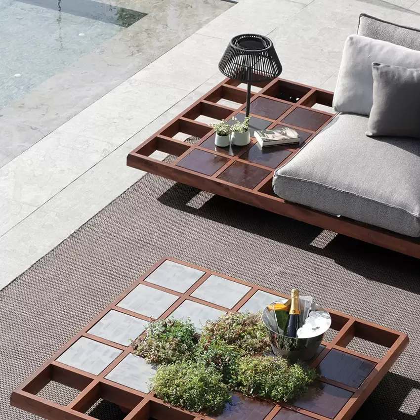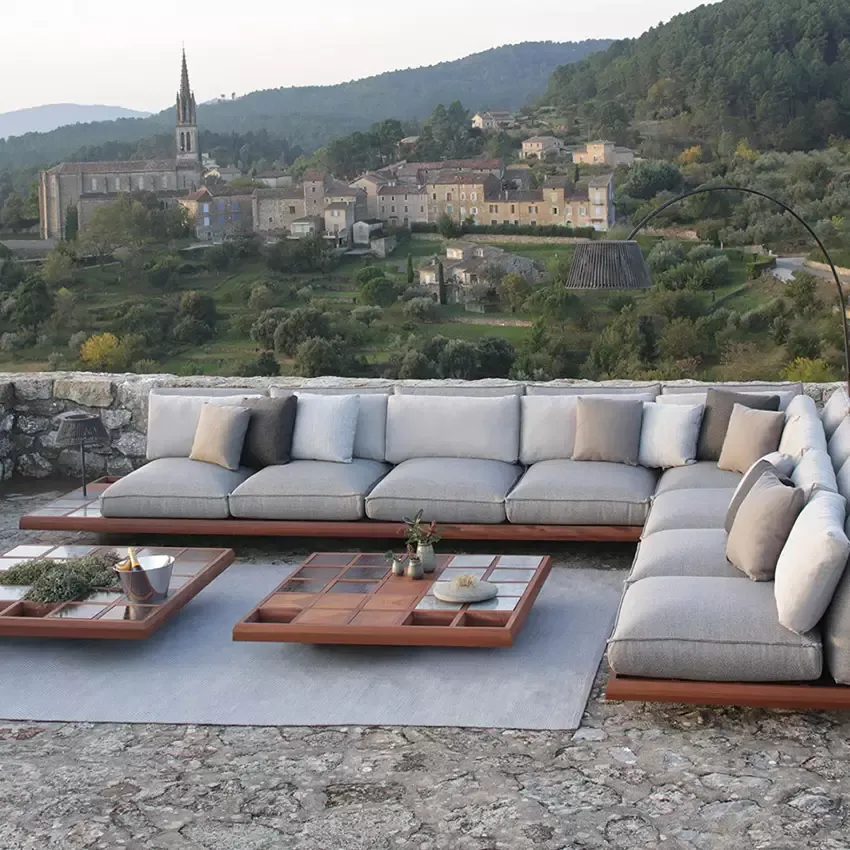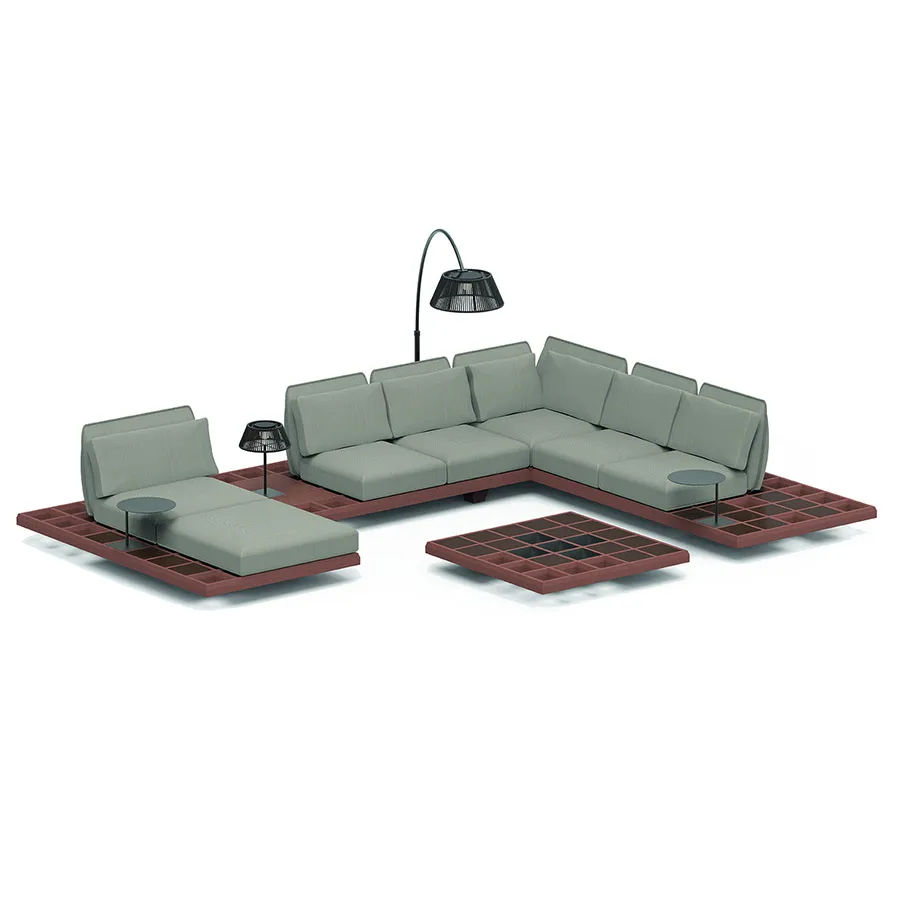 Коллекция мебели для отдыха Mozaix от Royal Botania включает различные комбинации дивана, софы, встроенных или отдельностоящих кофейных столиков.
