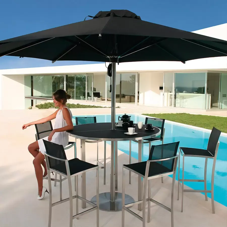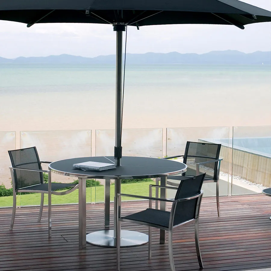 - Обеденный стол круглый Ø130 см с возможностью установки зонта;