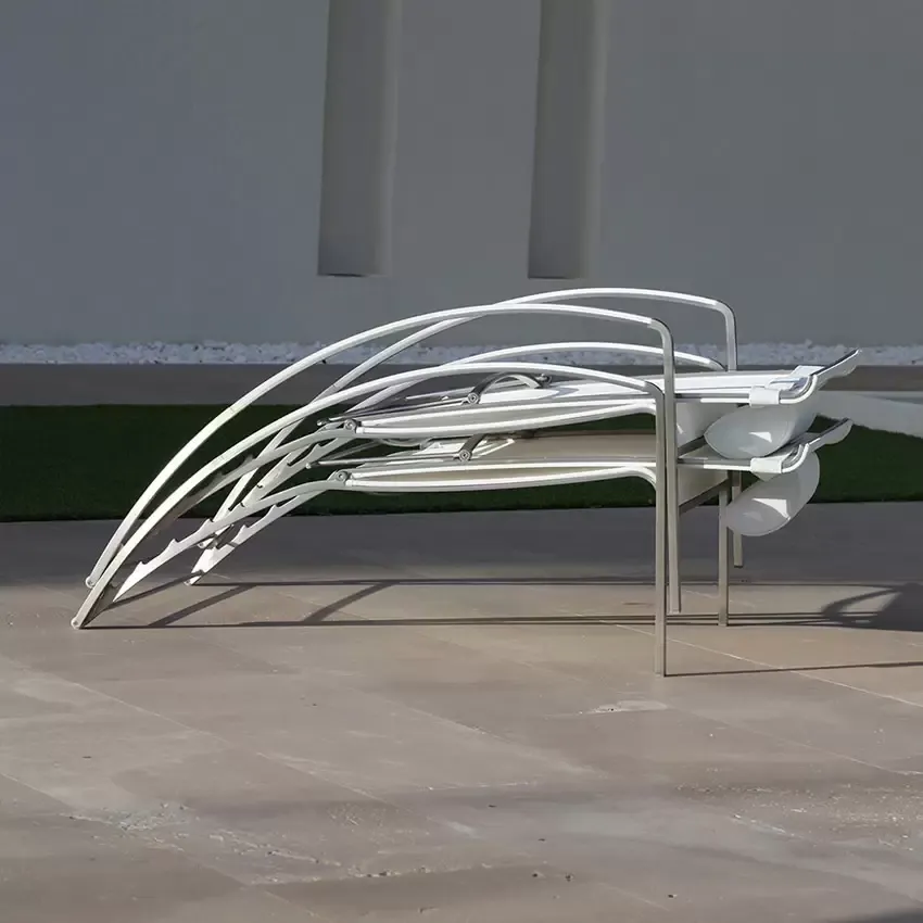 Очень сложно не оценить уникальную изысканную форму QT. Несмотря на очень тонкие линии профиля из нержавеющей стали, концепция была тщательно изучена. Дизайнеры придали мебели из этой серии не только максимальную устойчивость, изящный внешний вид и комфорт, но и обеспечили возможность легко укладывать как стулья, так и шезлонги.
