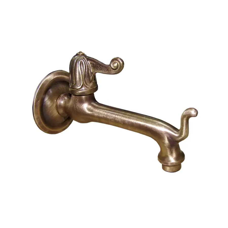Изящный кран для хаммама (турецкой бани) "Artistica". Изготовлен из латуни с покрытием, цвет бронза. Статичный (не вращается), однорычажный кран-букса.