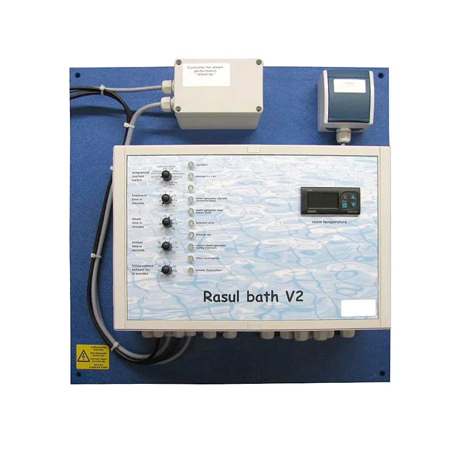 Оборудование WDT для Расула управляет функциями парогенератора, подогревом лавок, форсункой душа, световым сопровождением, форсунками для принятия водных процедур, имеет возможность управления звуковыми эффектами и ароматерапией.